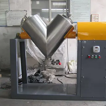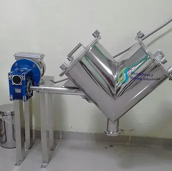 Una Mezcladora en V es una máquina de procesamiento industrial diseñada para lograr una mezcla homogénea y eficiente de polvos, granulados o materiales secos a granel. Su característica forma en «V» permite un flujo controlado de ingredientes a través de paletas o cuchillas internas que trabajan en un movimiento de cizallamiento suave. Esta acción garantiza la combinación completa de los componentes, incluso en lotes de gran tamaño. La Mezcladora en V, también llamado Mezclador de Pantalón (porque se visualiza con sus piernas en forma de V). Se utiliza para producir una mezcla solida homogénea, y productos que contengan hasta un 15 % de humedad y es ampliamente utilizada en diversas industrias, incluyendo la farmacéutica, alimentaria, química y de materiales de construcción, donde la uniformidad de la mezcla es esencial para la calidad del producto final. Su diseño robusto y su capacidad para manejar materiales con precisión la convierten en una herramienta crucial en la producción industrial y en la investigación y desarrollo de formulaciones.